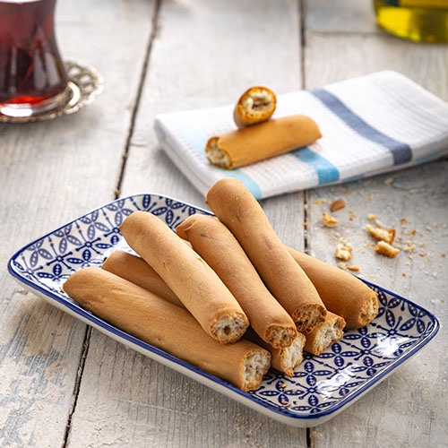 Mayalanan hamurdan ceviz büyüklüğünde parçalar koparılıp uzun çubuklar yapılır ve fırın kağıdı serilmiş tepsiye dizilir.